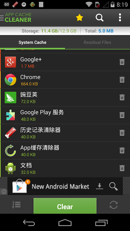 - 1-tap to clear all cached files